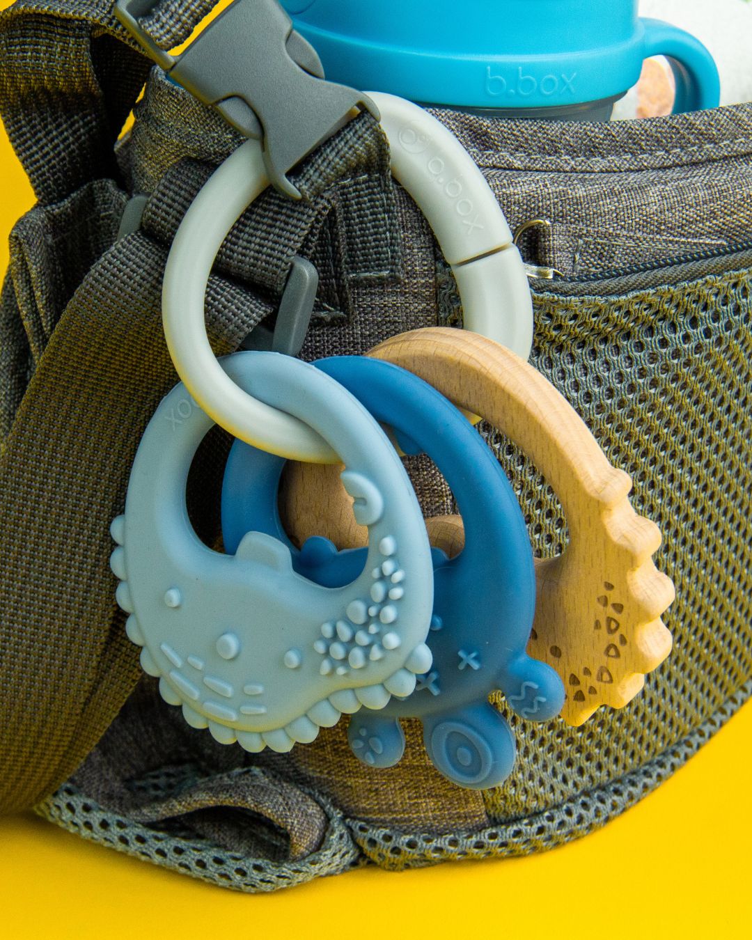 Introducing the b.box trio teether. It’s three textured teethers on one handy ring offering the choice of silicone and beechwood throughout the teething journey. Lightweight and easy to hold, use individually or as a set with customisable ring attachment to provide relief to sore, achy gums and stimulate sensory development.