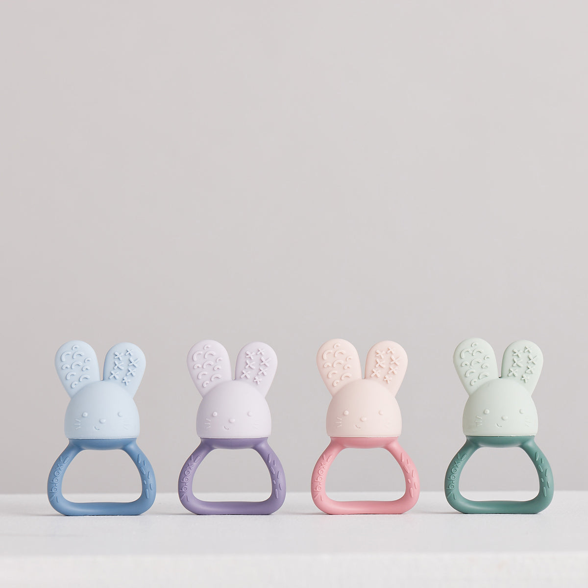Introducing the b.box chill + fill sensory teether. Offering a unique refillable teether to provide refreshing relief to teething tots from 3 months. Keep teether chilled in the fridge, then simply add an ice cube and cold water for cooling relief to inflamed, achy baby gums. Soft, food grade silicone bunny head and ears reach all areas of mouth safely.