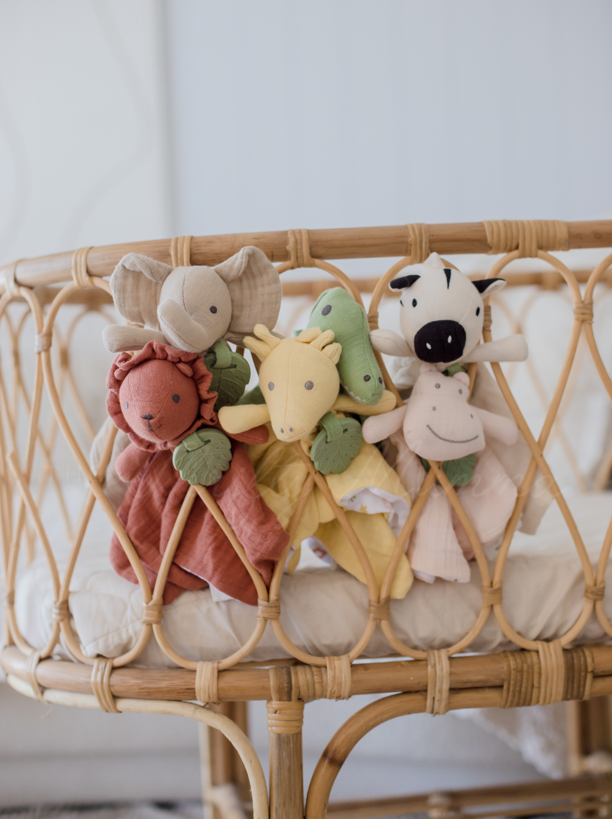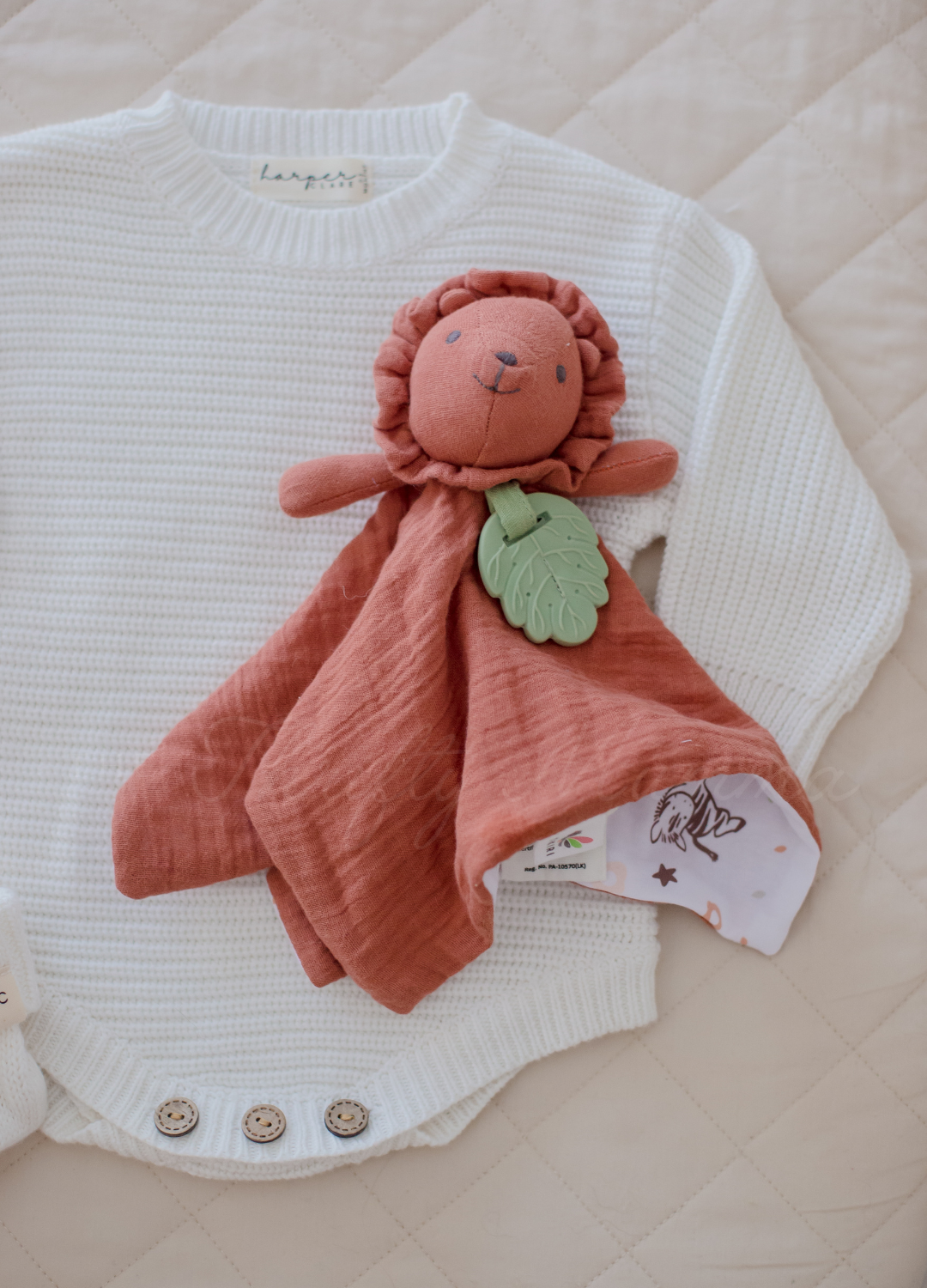 Introducing the cuddly and gentle organic zoo friends comforters. These adorable organic comfort toys are certain to become your child's beloved companion. Each comforter has a plush head, tiny arms for cuddling, and a rubber leaf for soothing teething gums.